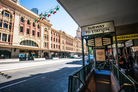 4 January 2019, Melbourne Vic Australia : Flinders street station and Campbell arcade subway entrance in Melbourne Victoria Australia