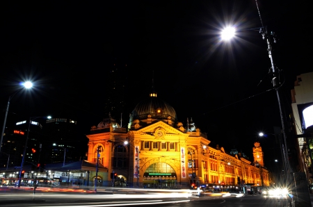 Melbourne Australia - September 12, 2015: Flinders street train station night view in Melbourne.