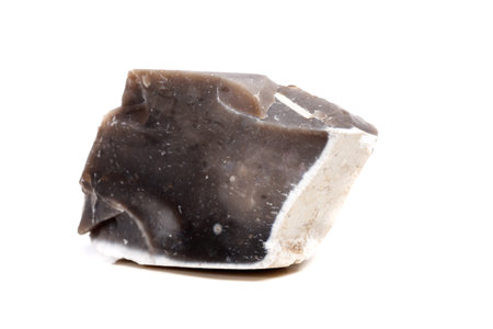 a macro photo of a flint on a white isolated background