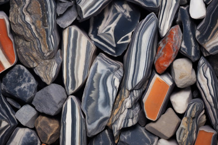 A diverse assortment of natural stones and rocks showcases unique textures and colors, perfect for geological studies, artistic designs, or educational purposes.