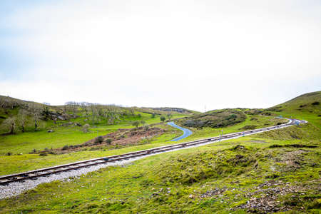 Journey Through Rustic Railway: A Serene Passage Amidst Natures Green, where Steel Meets Wood in an Old Mountain View