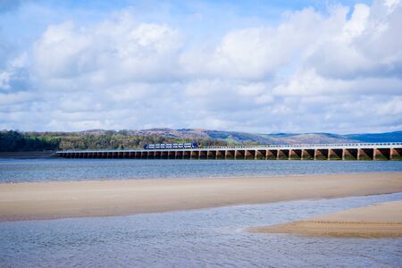 Railway viaduct across the river kent estuary at Arnside, Cumbria, UK