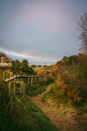 A beautiful path that leads through sand dunes in western Jersey backing the southern end of St Ouen's Bay