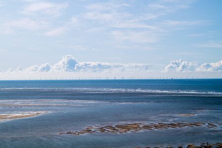 view across morcambe bay from grange over sands in cumbria with the south lake district visible in the distance