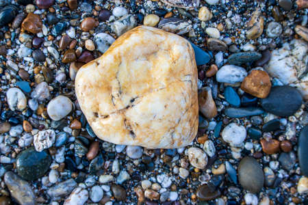 Stone on the sand,A close up view of smooth polished multicolored stones washed ashore on the beach.