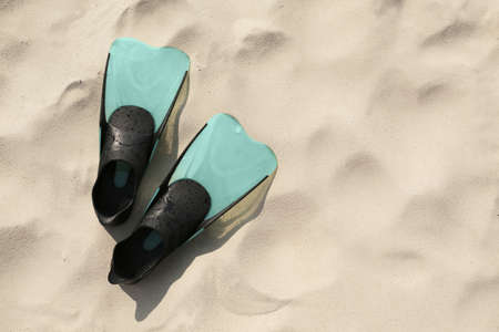 Pair of diving fin on the sandy beach