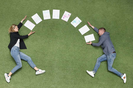 High angle closeup of two African American two women collaborating on creative project and holding photo prints with nature landscapes