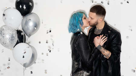 couple in love kissing inside. enamored guy and girl are hugging close-up.