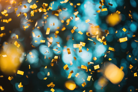 Vibrant golden confetti against a dark backdrop creates an engaging visual experience for celebrations