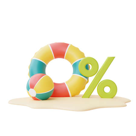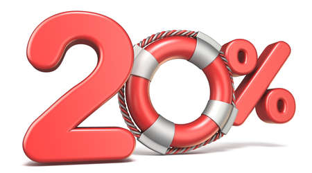 Life buoy 20 percent sign 3D render illustration isolated on white background