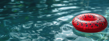 Red swim tube floating on blue water in water park for pubic security purpose.