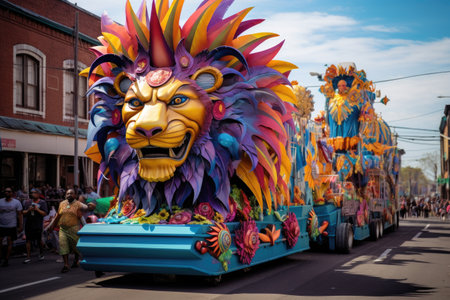 mardi gras parade, with festive floats and marching bands, created with generative ai