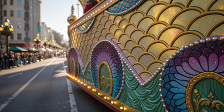 Artistic Scale Closeup view of the intricate scales of the s on the float showcasing detailed artistic designs that sparkle in the sunlight as it moves through the parade..