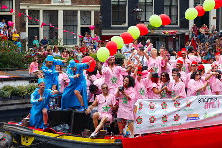 Amsterdam, Netherlands - August 2, 2014: Moroccan boat at the famous Canal Parade of the Amsterdam Gay Pride 2014. Every year the parade is visited by more than 400 000 people