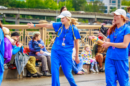 Portland, Oregon, USA - June 9, 2018: Providence Children’s Health in the Grand Floral Parade, during Portland Rose Festival 2018.