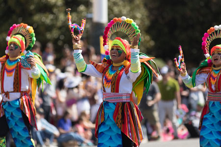 Washington, D.C., USA - April 14, 2018 Members of the Carnival of Pasto Colombia in the 2018 National Cherry Blossom Parade