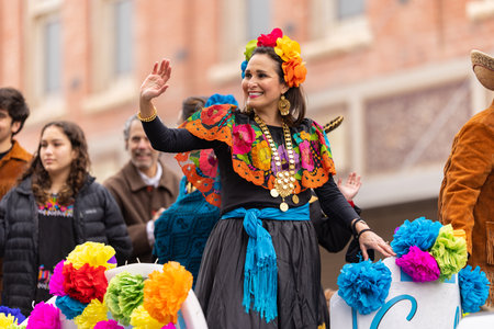 Brownsville, Texas, USA - February 24, 2018, Grand International Parade is part of the Charro Days Fiesta - Fiestas Mexicanas, A bi-national festival between USA and Mexico.