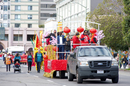 Oakland, CA - Feb 18, 2024: City and County officials participating in the 2nd annual lunar new year parade in Oakland’s Chinatown.