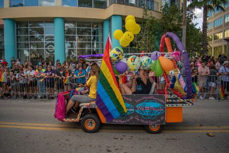 Orlando, Florida. October 12, 2019. Colorful car in Come Out With Pride Orlando parade at Lake Eola Park area 47
