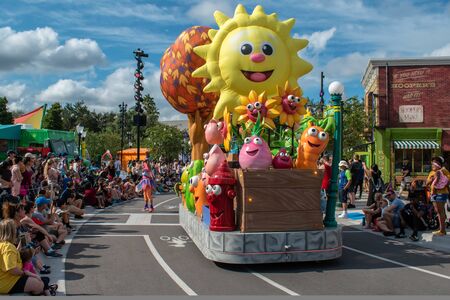 Orlando, Florida. November 06, 2019. Colorful vegetables float in Sesame Street Party Parade at Seaworld