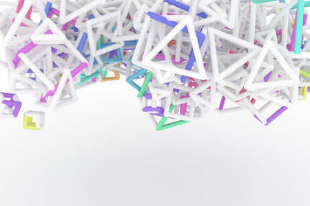 Concepture geometric, bunch of triangle or square flying, inter-locked, for design texture or title background. 3D render.