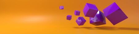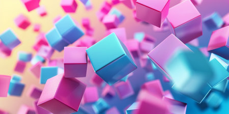 A colorful image of pink and blue cubes flying through the air - stock background.