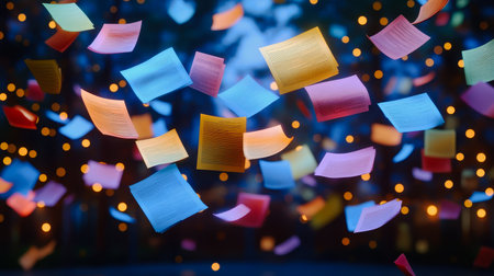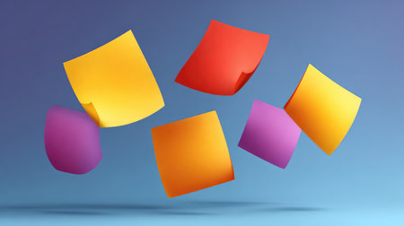 A collection of colorful sticky notes floating in mid-air, symbolizing brainstorming sessions, with space for design