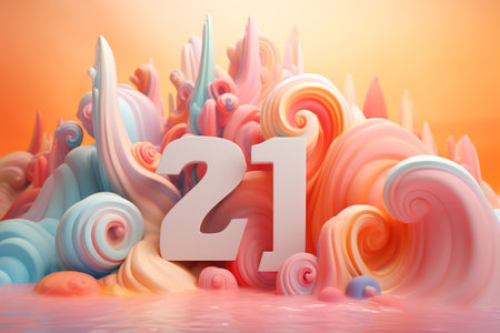 Colorful and playful number twenty one. Symbol 21. Invitation for a twenty-first birthday party or business anniversary. Generative AI
