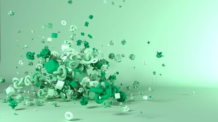 Abstract 3d rendering of geometric shapes in white background, computer generated images