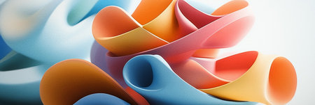 Dynamic Arrangement Abstract Shapes Installation with Vibrant Gradient Hues and Layered Sculptures