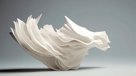 An AI-generated illustration of an artistic arrangement of white folded paper towels on a white surface