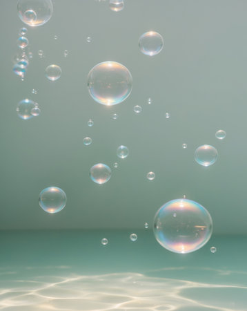 Iridescent bubbles create a colorful overlay texture with soft reflections