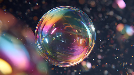 Beautiful rainbow reflections in soap bubble creating colorful and vibrant background