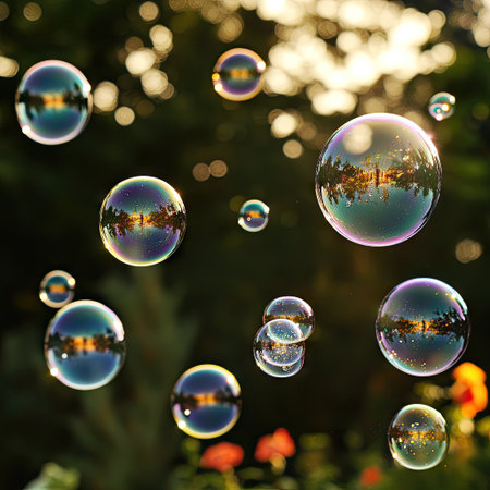 Soap bubbles gleaming in the afternoon