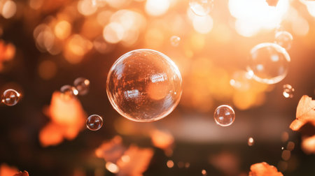 AI Generated. Delicate Bubbles with Glowing Sunlight Background