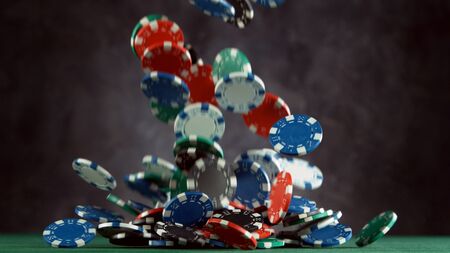 Poker still life with falling poker chips