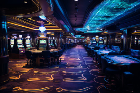 Luxury casino interior with slot machines and neon lights