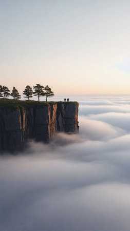 Majestic Solitary Tree on Steep Cliffs Surrounded by Dense Fog, Capturing Nature s Tranquil Beauty