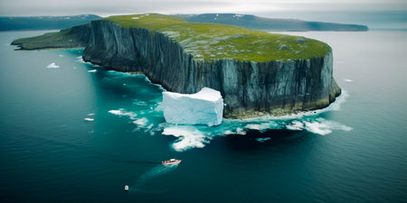 Breathtaking view of the iceberg wall from above. Provides a unique perspective on the majesty and scale of icebergs. Creates a sense of awe and wonder with a bird's eye view.