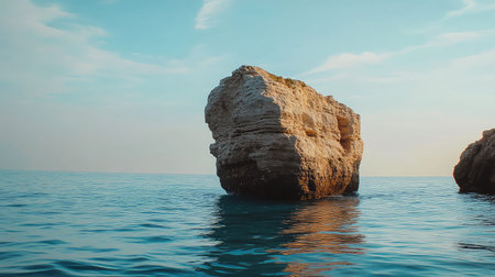 Escape to a tranquil coastal cliff where gentle sunlight warms rugged rocks Feel the soft breeze and hear ocean waves softly crashing below This serene scene offers a space for reflection, showcasing the peaceful contrast between the vast ocean and the rough landscape A perfect moment for contemplation and appreciating AI Generative