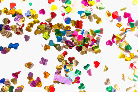 Colorful confetti isolated on white background. Festive decoration.