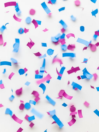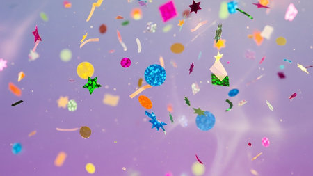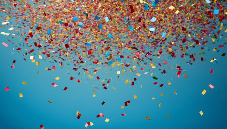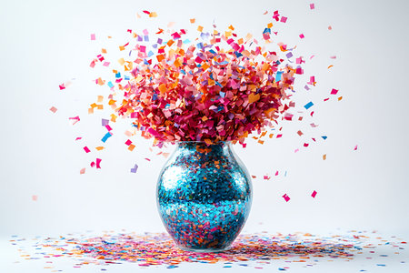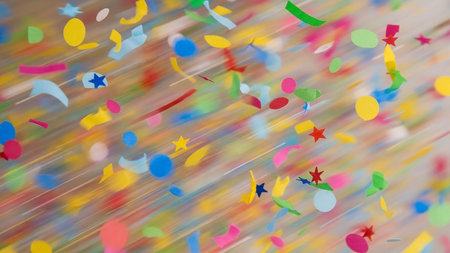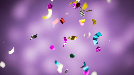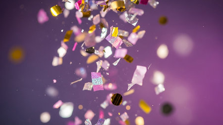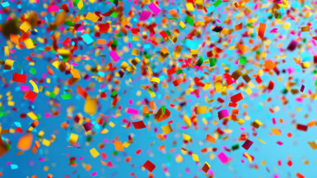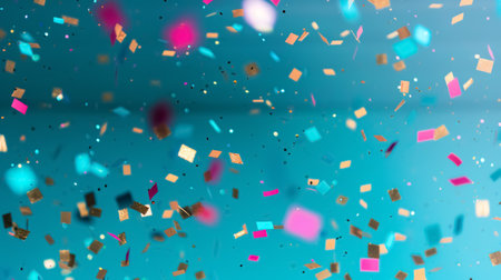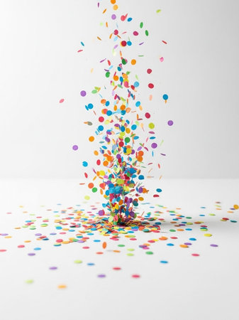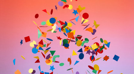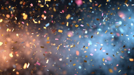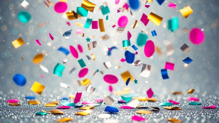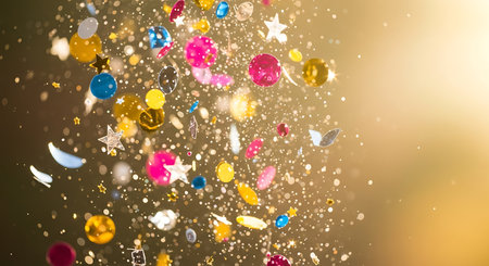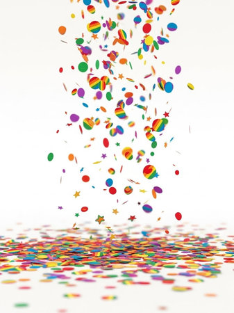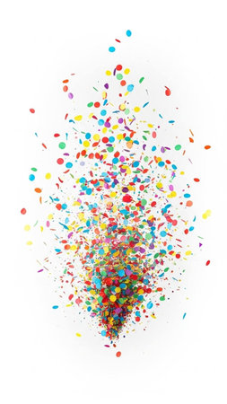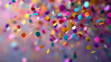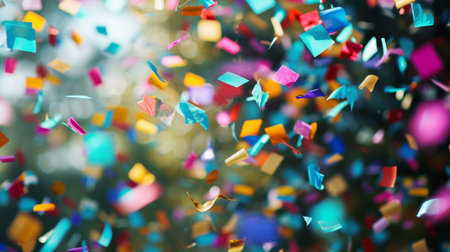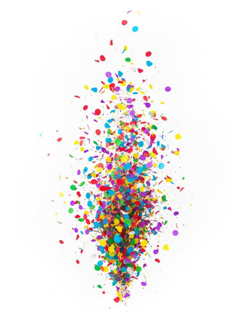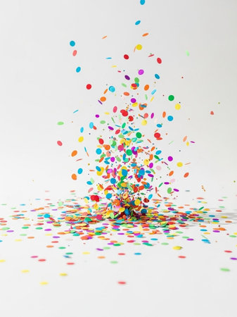 Bright bursts of vibrant confetti dance and shimmer, creating a lively and joyful atmosphere perfect for celebrations and special events.
