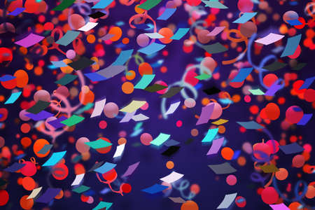 Colorful confetti and tinsel on glitter background. 3D rendering