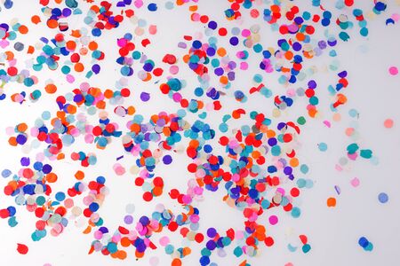 Colorful confetti on a white background. Festive background.