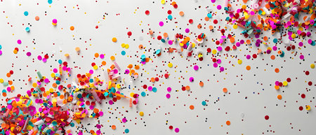 A vibrant image of colorful confetti scattered on a white background. Perfect for celebratory occasions.