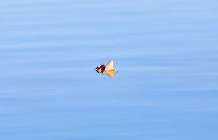 Confetti and trash in the sea. Concept of pollution of seas and oceans.