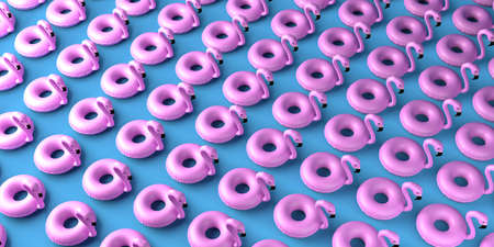 Flamingo floats background. Copyspace. 3D illustration.