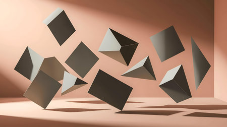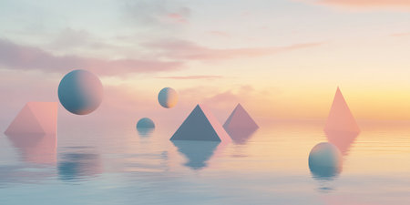 Minimalist geometrical abstract background, pastel colors, 3D render