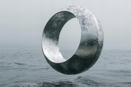 Conceptual image of a stone ring floating in the sea.