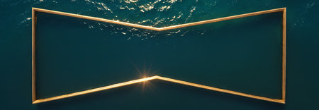 golden, angular frame cuts through the deep blue ocean, its sharp edges reflecting the sunlight.